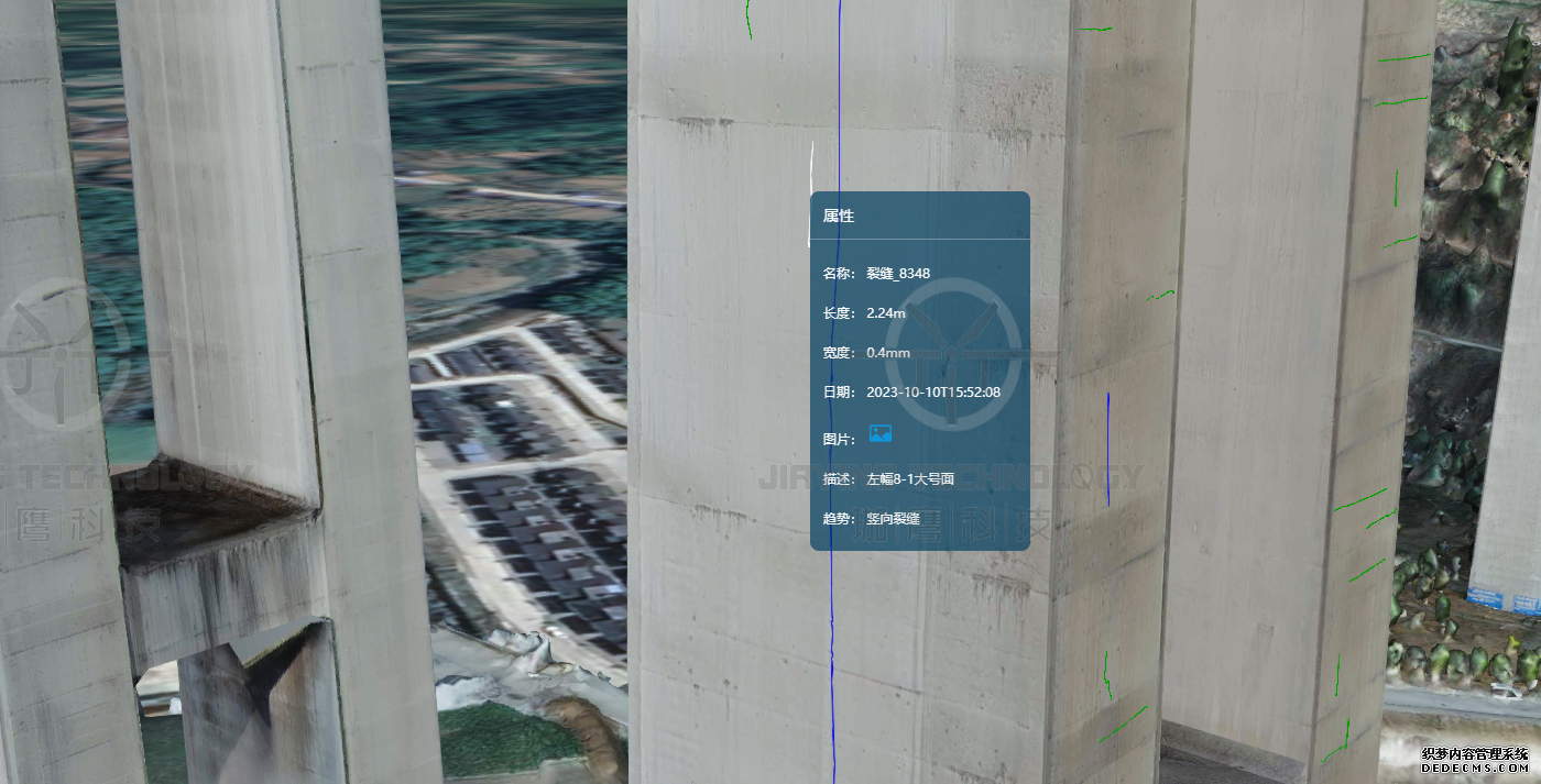 珈鷹自主開發(fā)GIS+BIM云平臺,可以方便業(yè)主實(shí)時查看三維立體模型,同時提供缺陷的準(zhǔn)確定位以及詳細(xì)信息標(biāo)注,能夠進(jìn)行多期數(shù)據(jù)比對,直觀展示缺陷演化趨勢。
