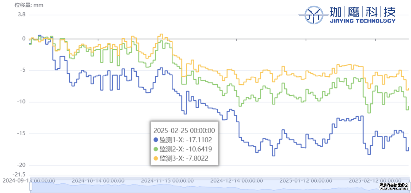 珈鷹科技通過自動化目標識別、AI視覺技術和數據監測平臺,構建了實時自動監測預警系統。系統運行穩定,能夠實時監測滑坡體的變形情況,為庫區安全提供了有力保障。