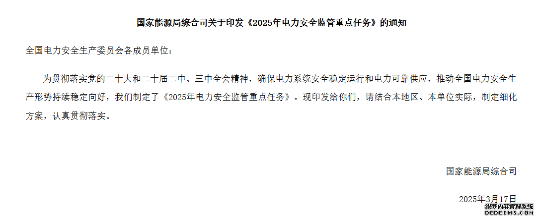 這一系列數據反映出我國經濟的蓬勃活力與社會發展的強勁動力,同時也對電力安全提出了更高的要求。國家能源局綜合司印發的《2025年電力安全監管重點任務》中指出,要進一步完善電力安全監管體系,推進電力安全監管重點工作,落實電力安全監管工作措施。基本目標是:杜絕重大以上電力人身傷亡事故、杜絕較大以上電力安全事故、杜絕水電站大壩垮壩漫壩事故,努力降低事故起數、傷亡人數,確保電力系統安全穩定運行和電力可靠供應。