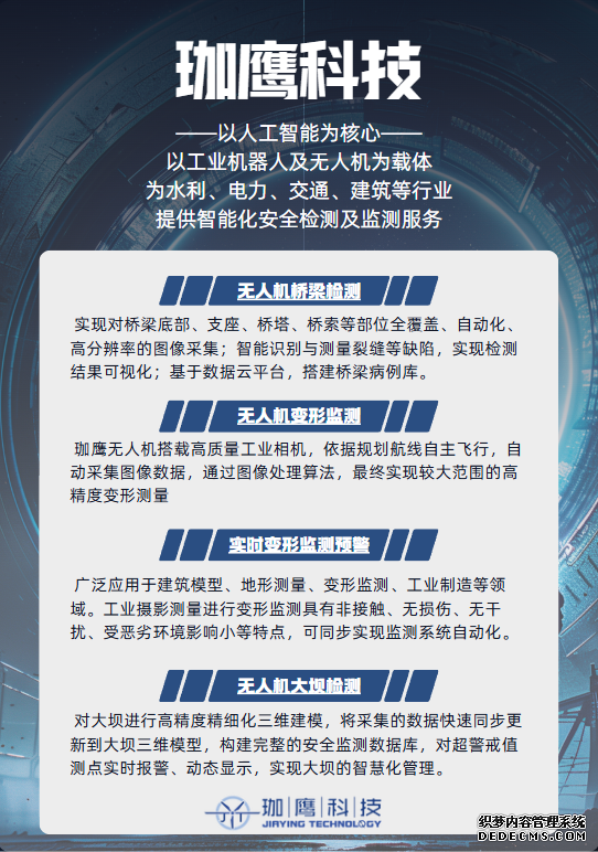 珈鷹科技也是數據要素生產商中的一員,自成立以來一直以人工智能為核心、以工業機器人及無人機為載體,為水利、電力、交通、建筑等行業提供智能化安全檢測及監測服務,致力于將數據轉化為推動新質生產力發展的強大動力。